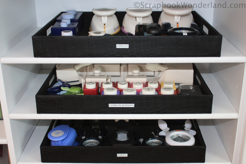 Designate a space for your punches. I wanted my punches on trays that slide onto shelves. This way I can easily move a tray of punches to my craft table, or just pull out the punch I would like to use.