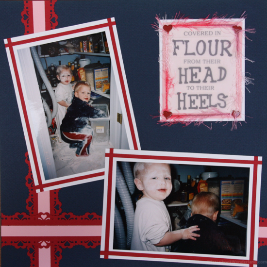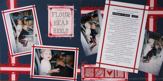 Journaling reads: One long week in March, 2002, Joe and Ryan taught me the true meaning of unconditional love. The first day of the week the boys got into the flour in the pantry. I was not very impressed but managed to see with humour in the situation with my husband’s guidance. We ended up with some cute photos of our naughty little boys.