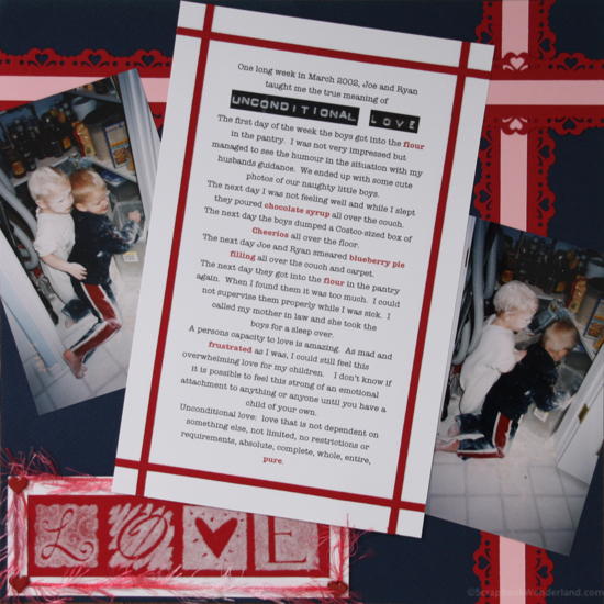 I scrapped a page a few years ago (or more than a few… but who’s counting) about a particularly bad week with my boys.