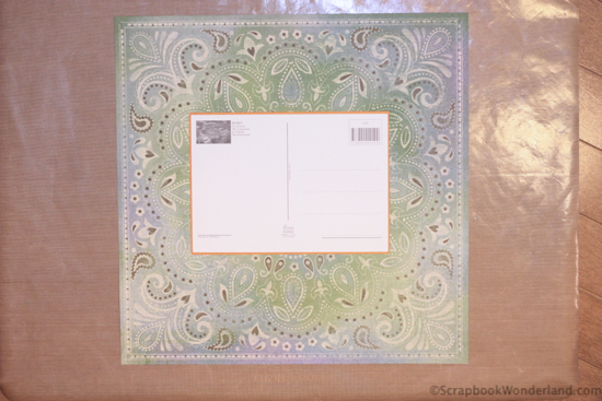 I cut a hole in the center of the paper to mount the postcard. Now you can see it from both sides!