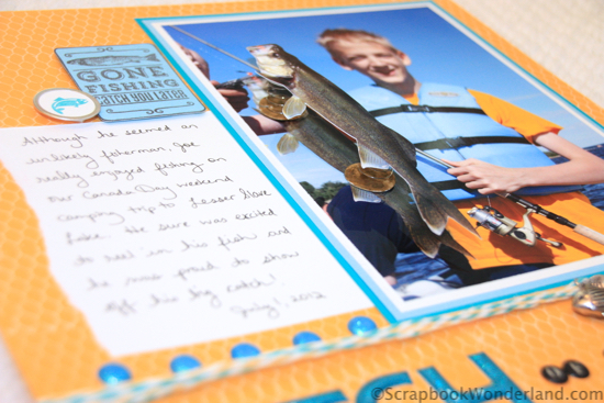 On this layout to create the pop-up fish I duplicated the photo, cut out the fish and mounted the fish on springs (from Close to My Heart) over top of it on the original photo.