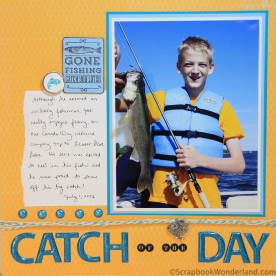 Journaling reads: Although he seemed an unlikely fisherman, Joe really enjoyed fishing on our Canada Day weekend camping trip to Lesser Slave Lake. He sure was excited to reel in his fish and he was proud to show off his big catch! July 1, 2012