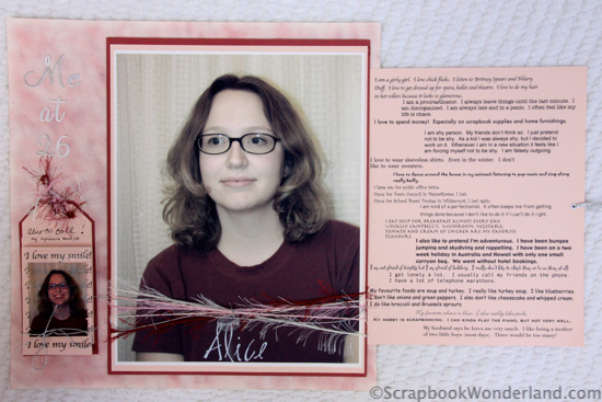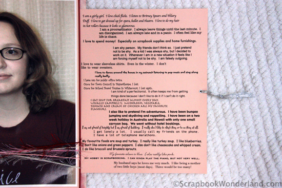 Melissa and I chatted about scrapbooking yourself. I shared one of my all-time favourite tips for journaling. We talked about selfies. I told her about one of the first pages I created that was all about me.