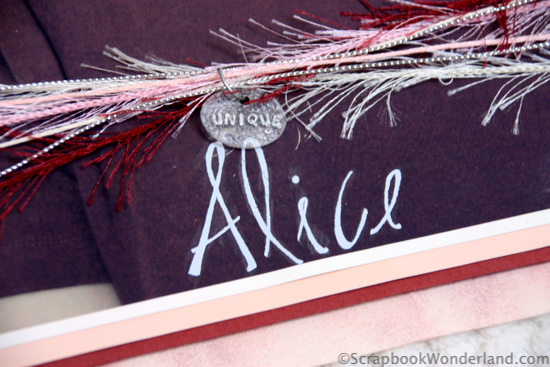 On the bottom of the photo I used rub-ons to add my name. I also used multiple fibres to reach across the photo and added a small shrinky-dink charm I made with the word ‘unique’ on it.