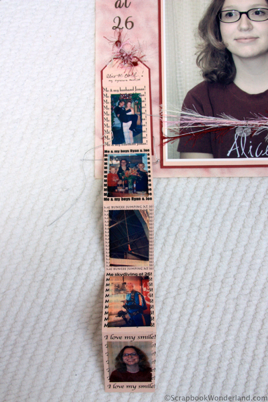 I created a pull out tab of hidden journaling for the layout. I didn’t want the clean design to be distracted by a bunch of words, and I knew I’d need a lot of room… there’s a lot to say about myself! ๐