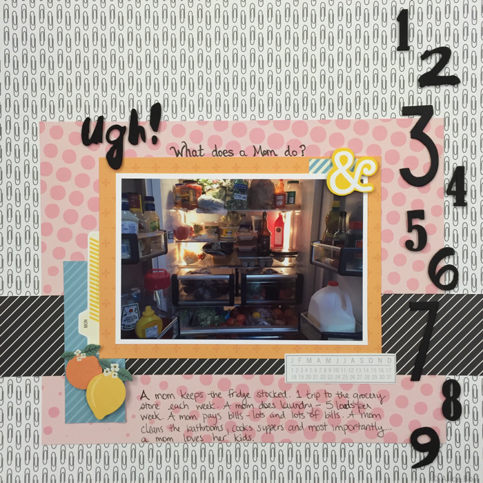 I wanted to create a page about all of the chores I do as a mom, but I feel that my journaling kind of fell short on this page. I might fix it, it just doesn’t do it justice. Ever have a page that almost hits the mark, but falls flat? That’s this page… it’s almost good.