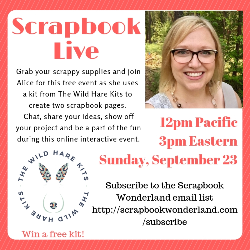 I’ll be scrapping with a kit from The Wild Hare Kits and I’ll be giving away a FREE kit during the live event!!! Yay!!!