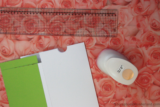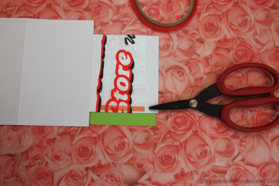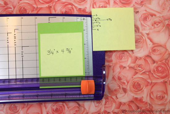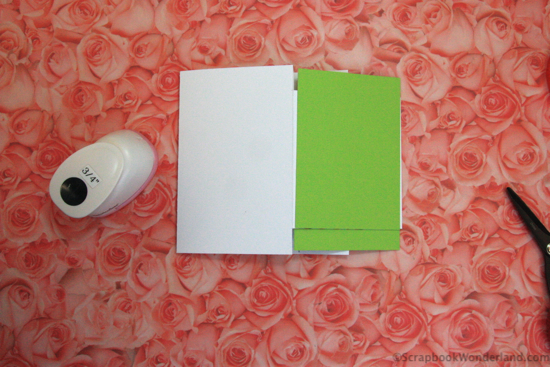 Attach one of the 3-1/4 x 4-5/8″ pieces of cardstock. Now you may be asking, “Why did you pick such a strange size? Do I really have to cut 5/8”? Are you evil? Lol!