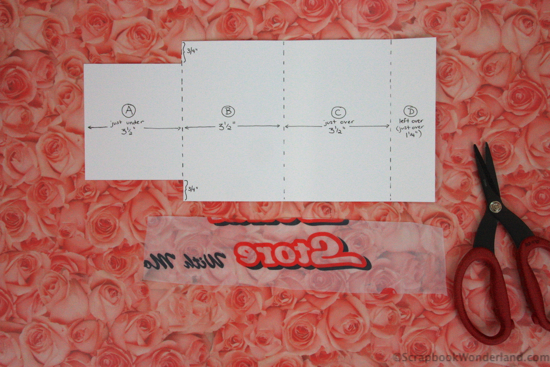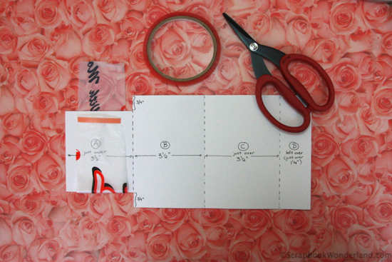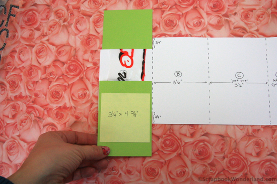 Cut 3/4″ off top and bottom of section A, just to the fold/score mark.
