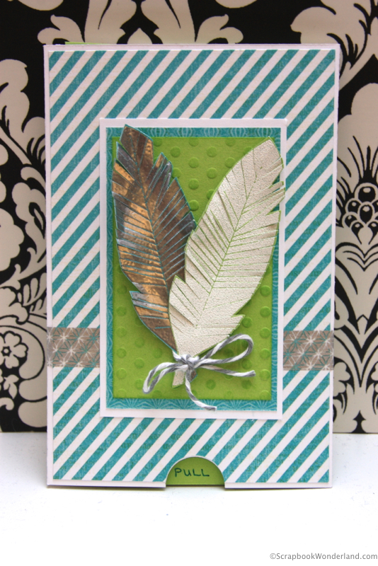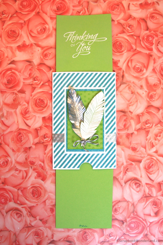 When you pull the tab at the bottom of the card not only does a hidden piece slide down but another piece pops out the top! Super-fun! 🙂