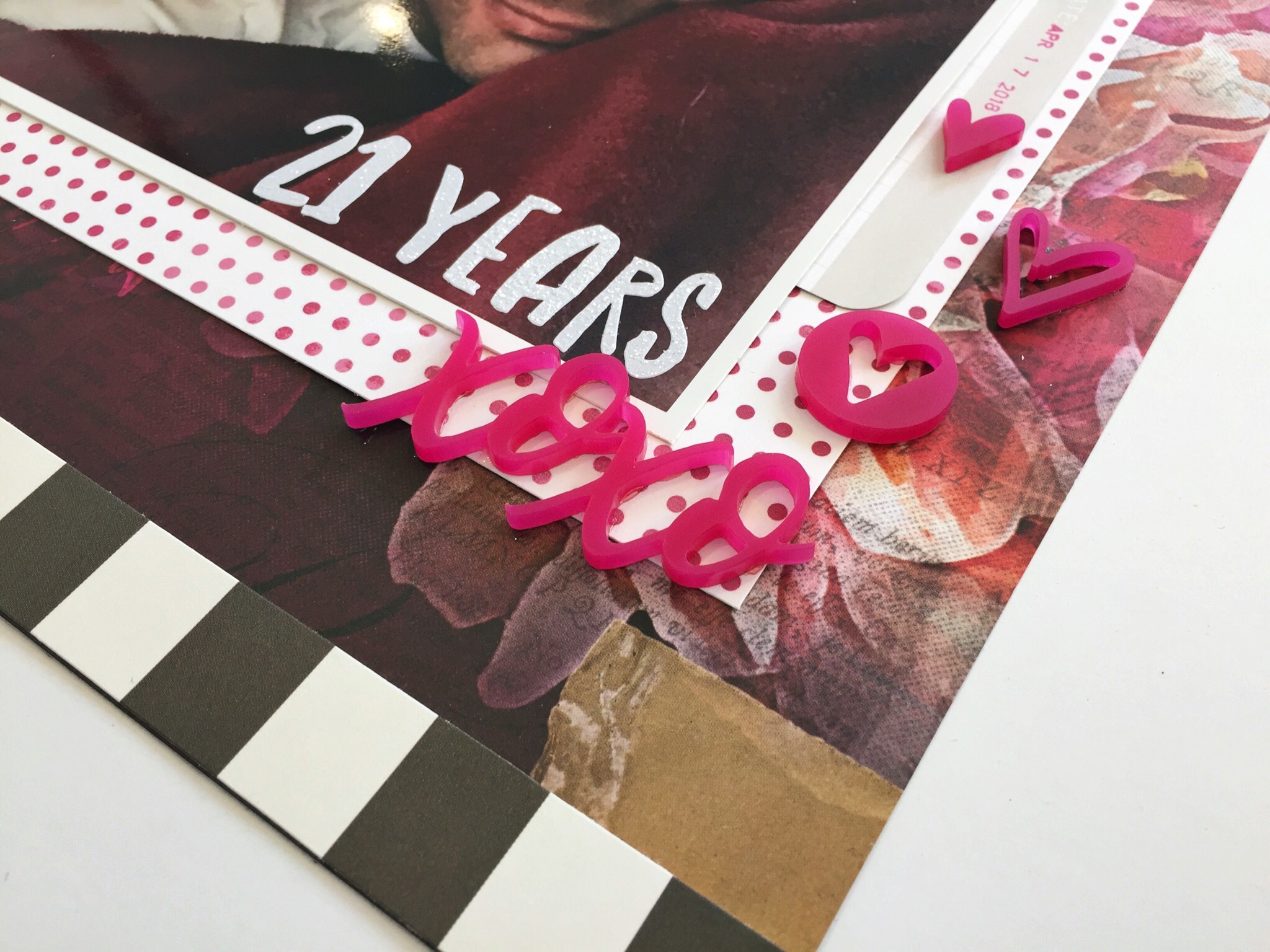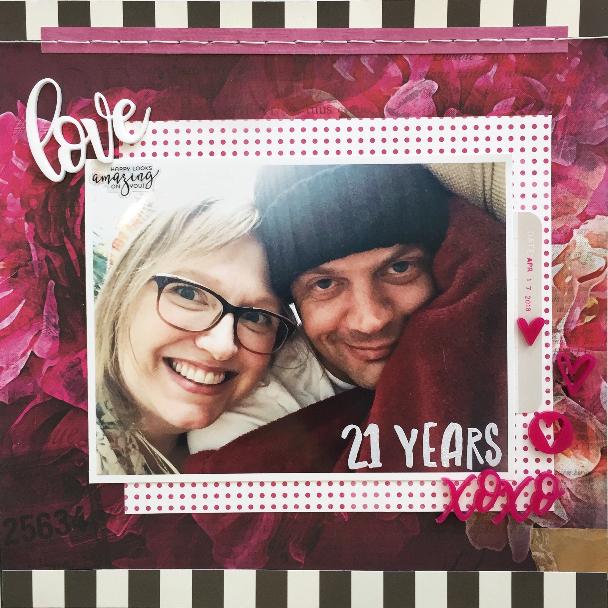 I used a large photo of me and my husband for my 12×12 layout today. It’s not really a glamorous photo, but I love it anyway, so I made it big. I love working with big photos!