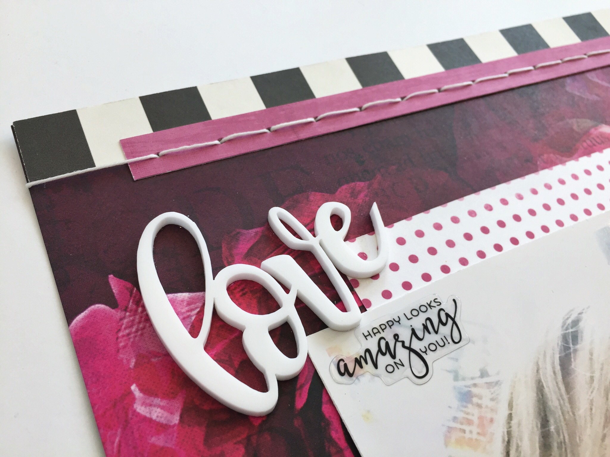 I had talked about adding stitching to this layout during the live event, but I decided I really should do it, so I added it after when I was doing my journaling.