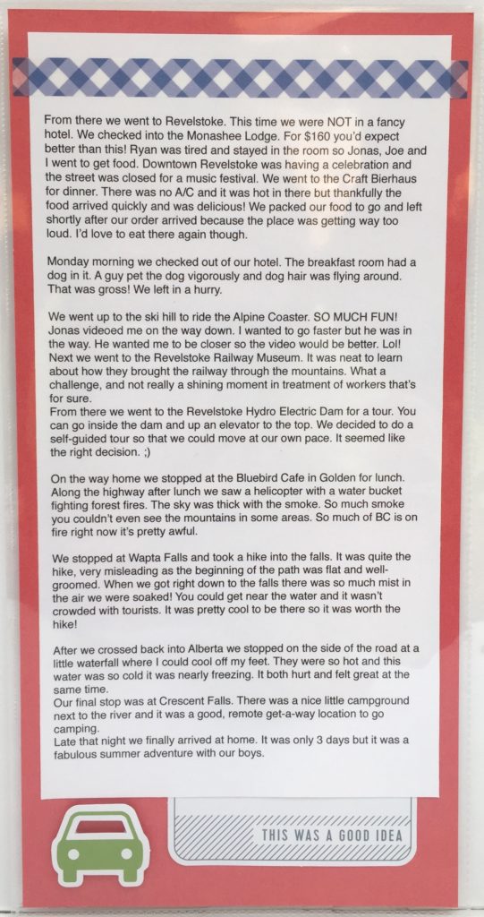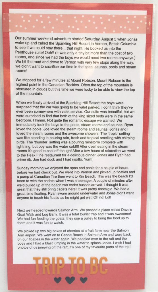Today’s layouts focused on a recent trip I made with my family to British Columbia, Canada. (We live in Alberta, so it was a 9 hour car ride.)