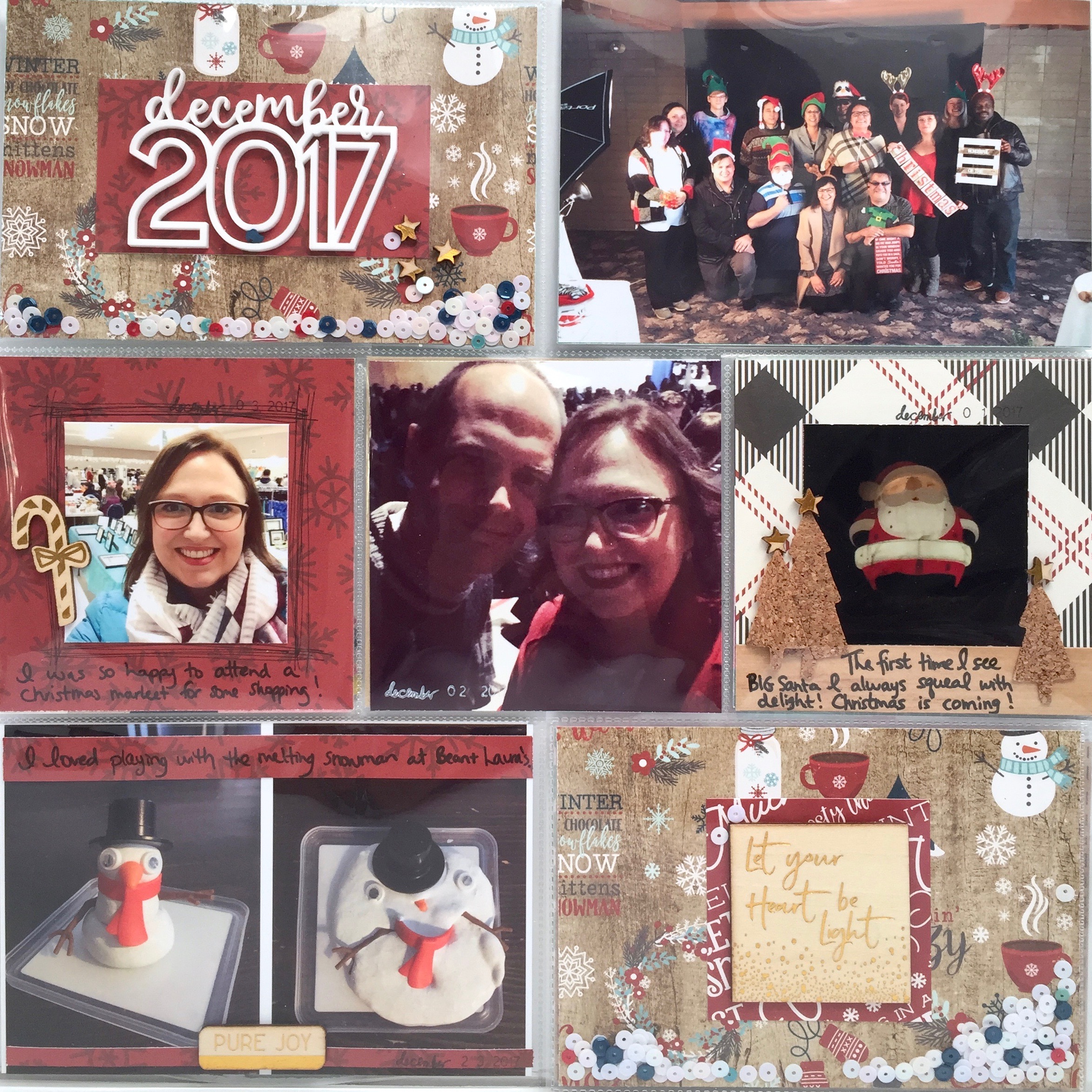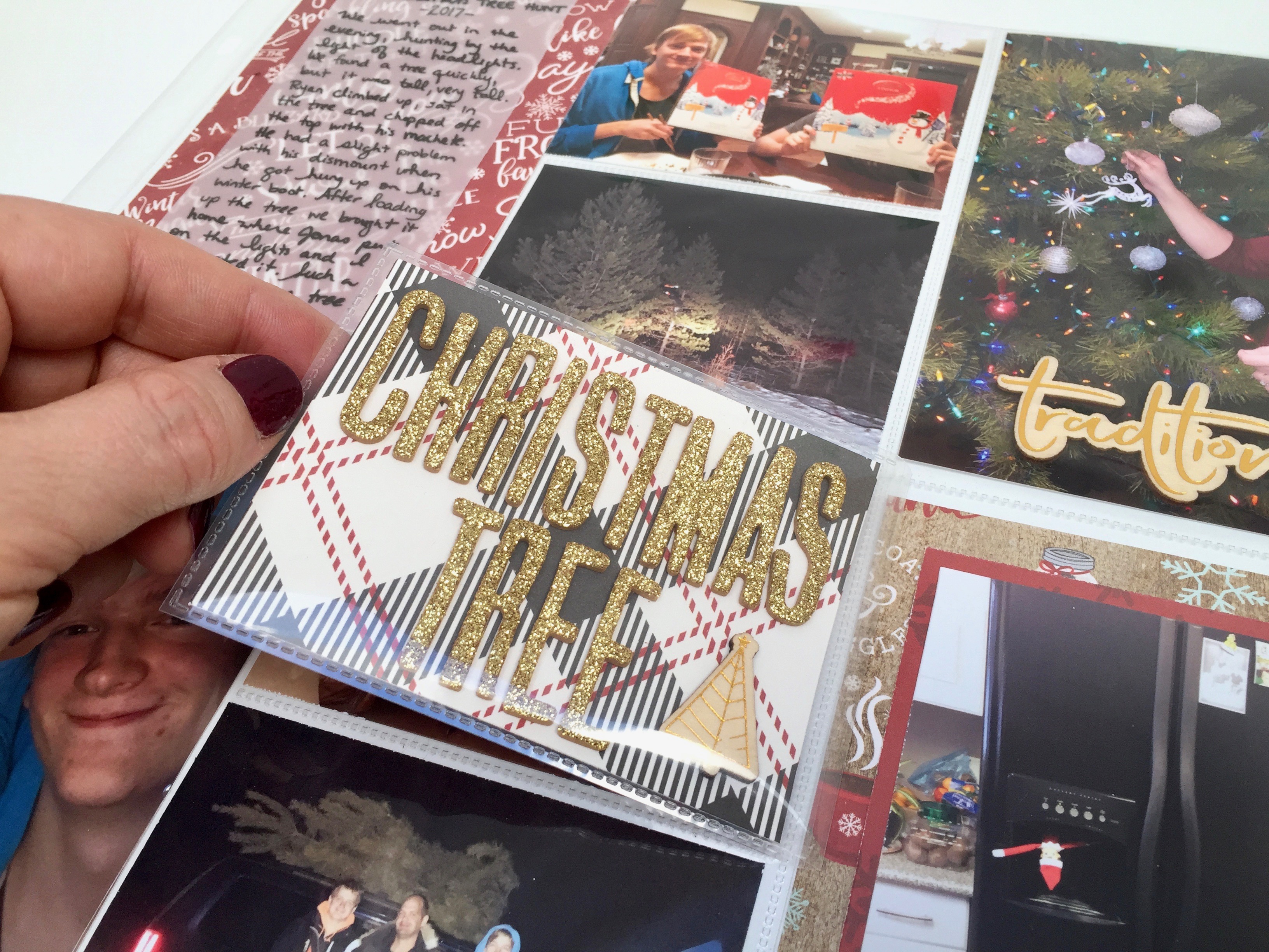 I had WAY TOO MANY photos for the two page spread I wanted to make. Thankfully when I asked everyone during the crop they told me to separate out the Christmas Eve and Christmas Day photos. When I did that I was left with a much more manageable number of photos. Crowd sourced scrapping for the WIN! ๐