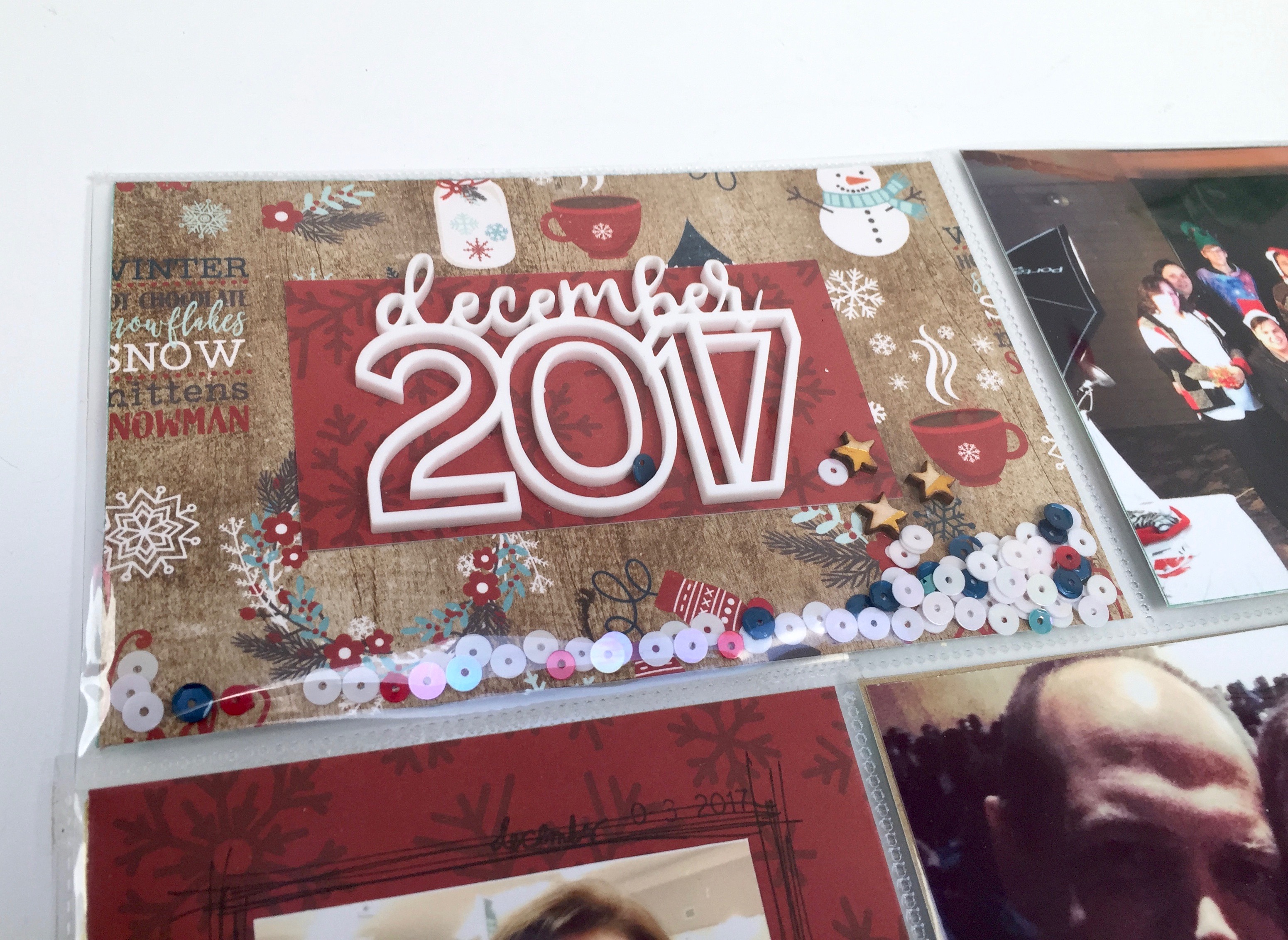 I was enamoured with the package of sequins in my kit and even though I made shaker pockets for my November spread (click to see) I decided that this page would have shakers too!