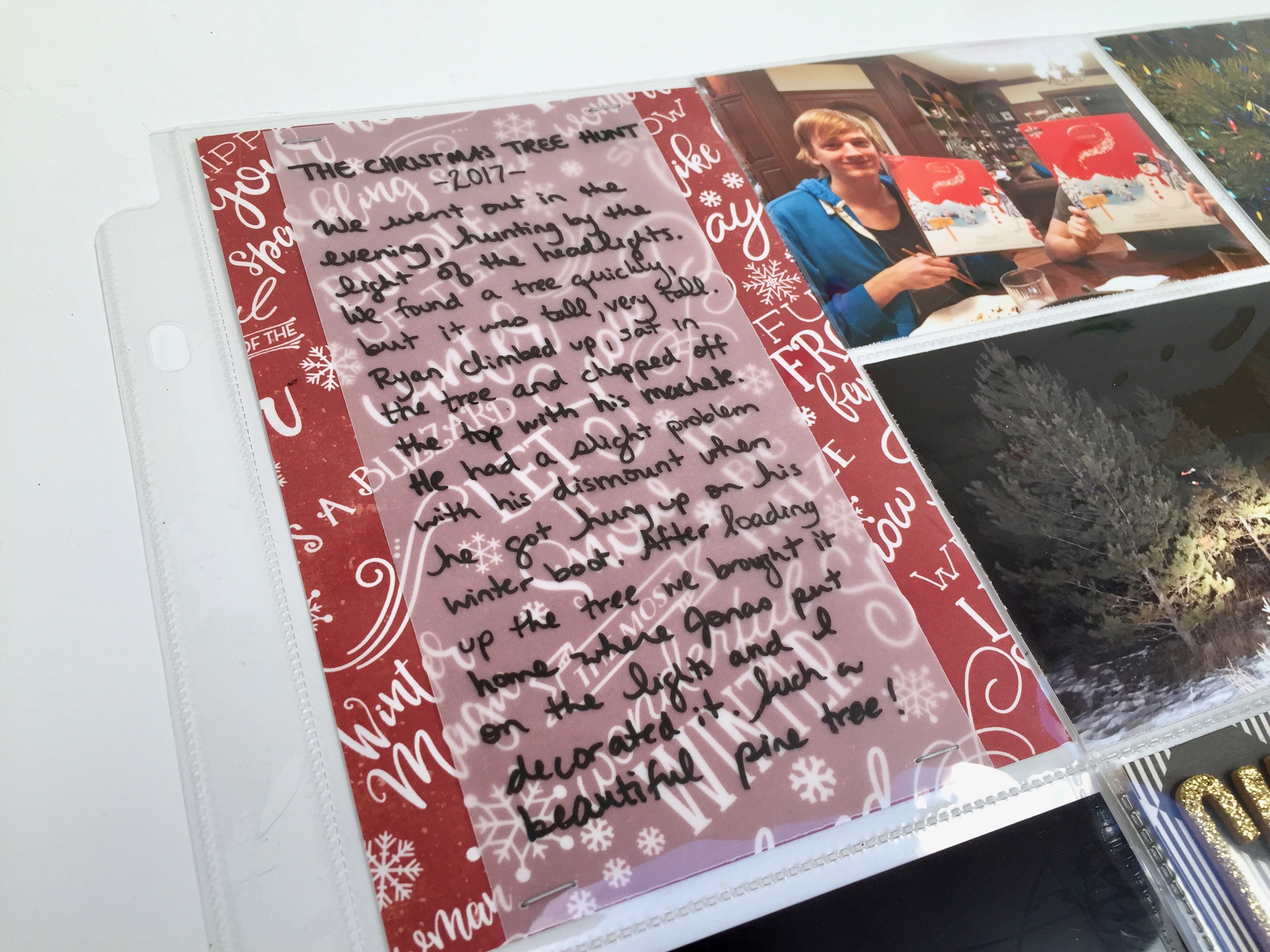 The right page gave me plenty of room to talk about the fun we had on our Christmas tree hunt.