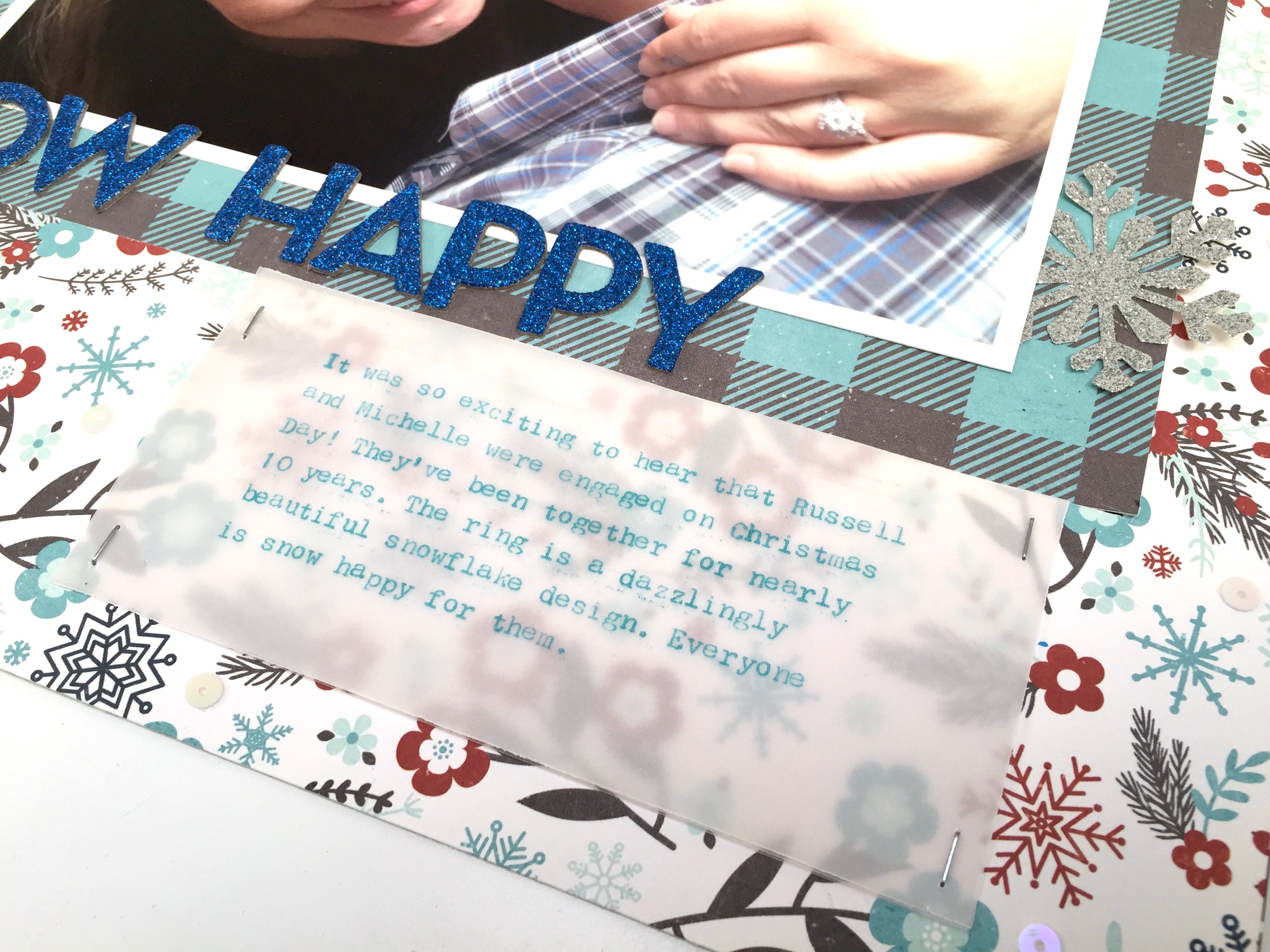 TIP: If you feel that your journaling makes your pages ‘less pretty’ use a flap to hide the journaling. It’s still easy to access and read when you’re looking at the page, but the overall page looks prettier!