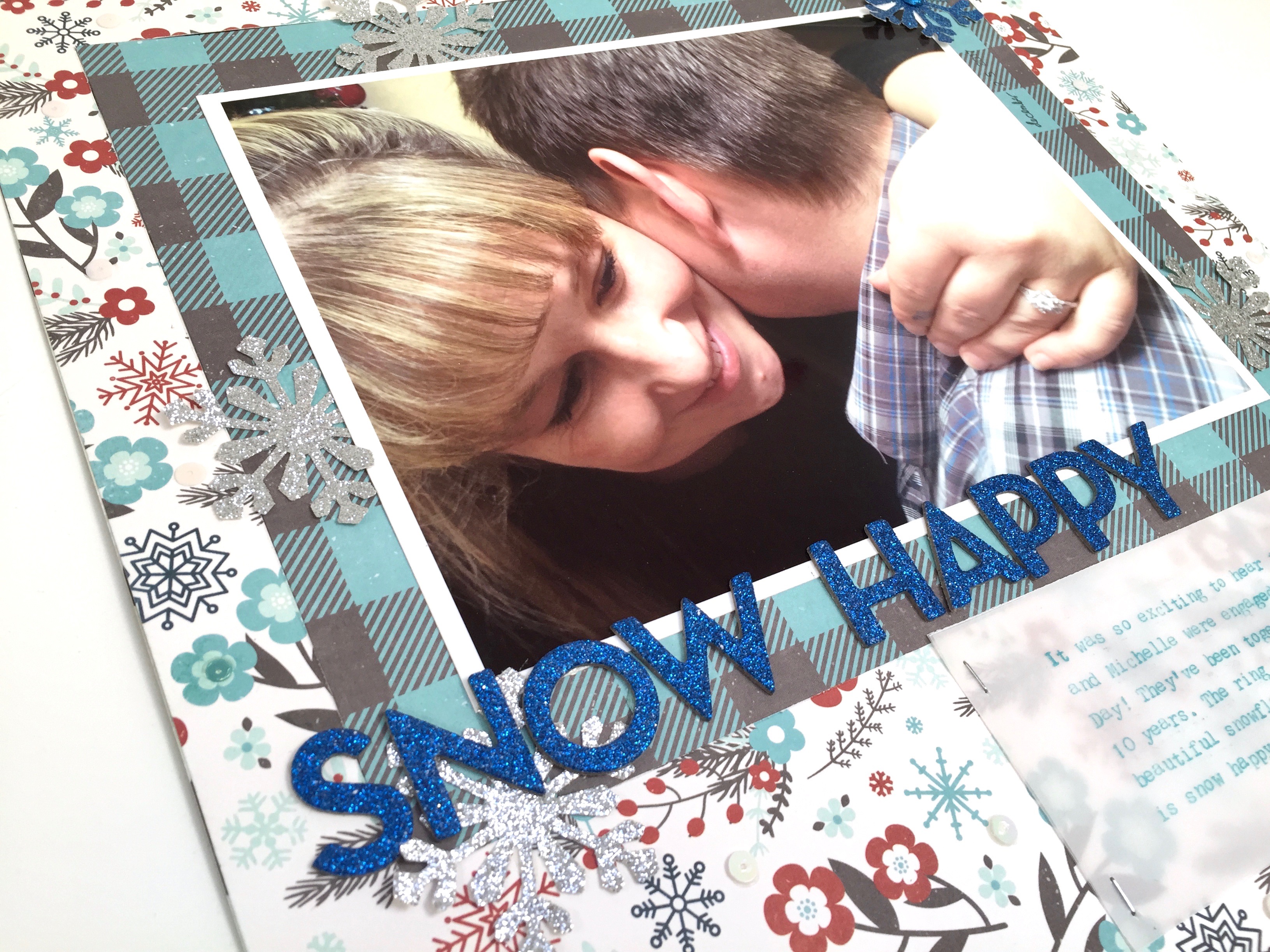 I cut out some snowflakes from glitter paper in my stash to add an extra bit of sparkle to this diamond, snowflake inspired page.
