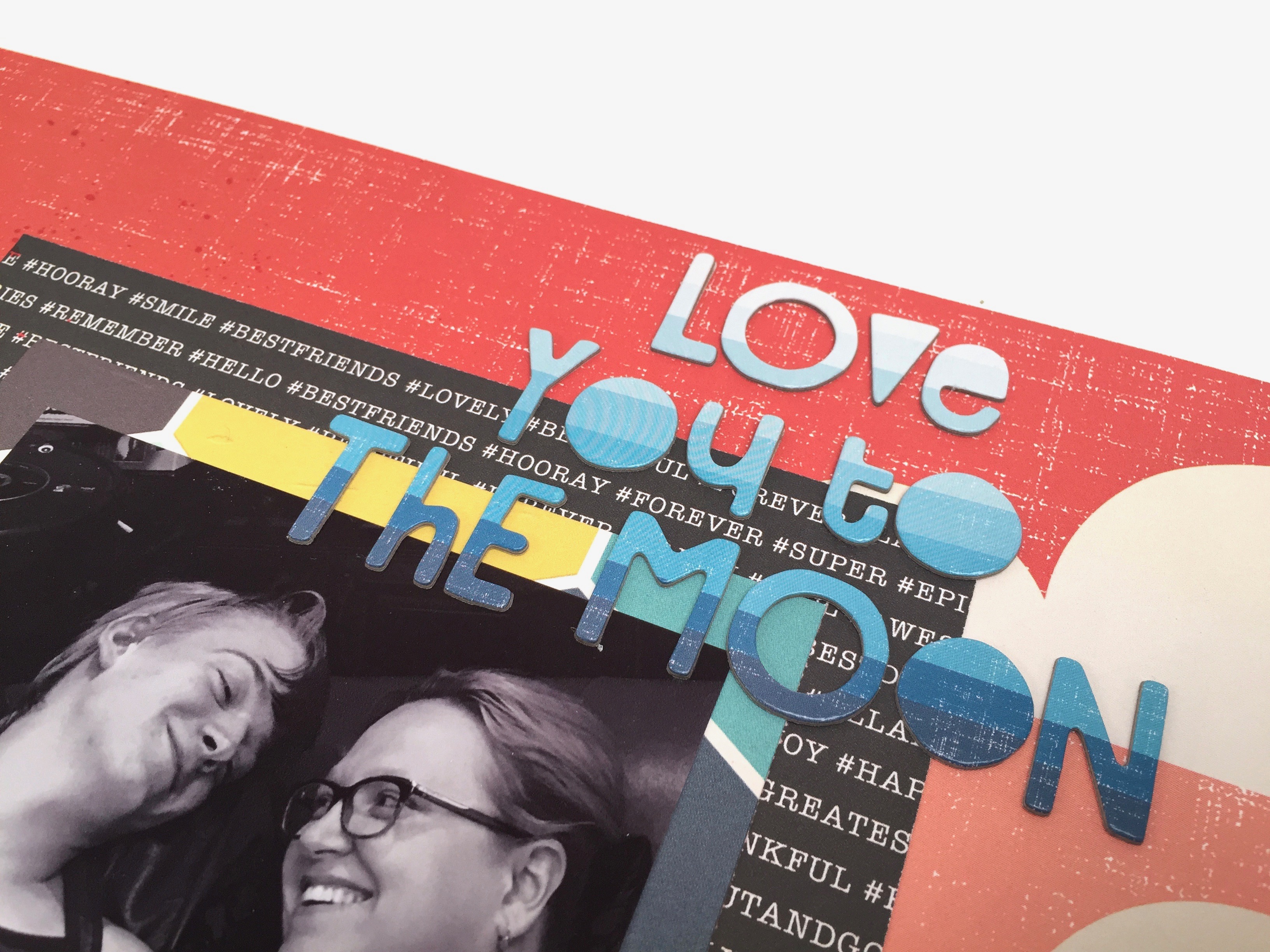 I fell in love with the words, ‘Love you to the moon’ from the Explorer Thickers package. I love how the words start pale and move down to dark blue.