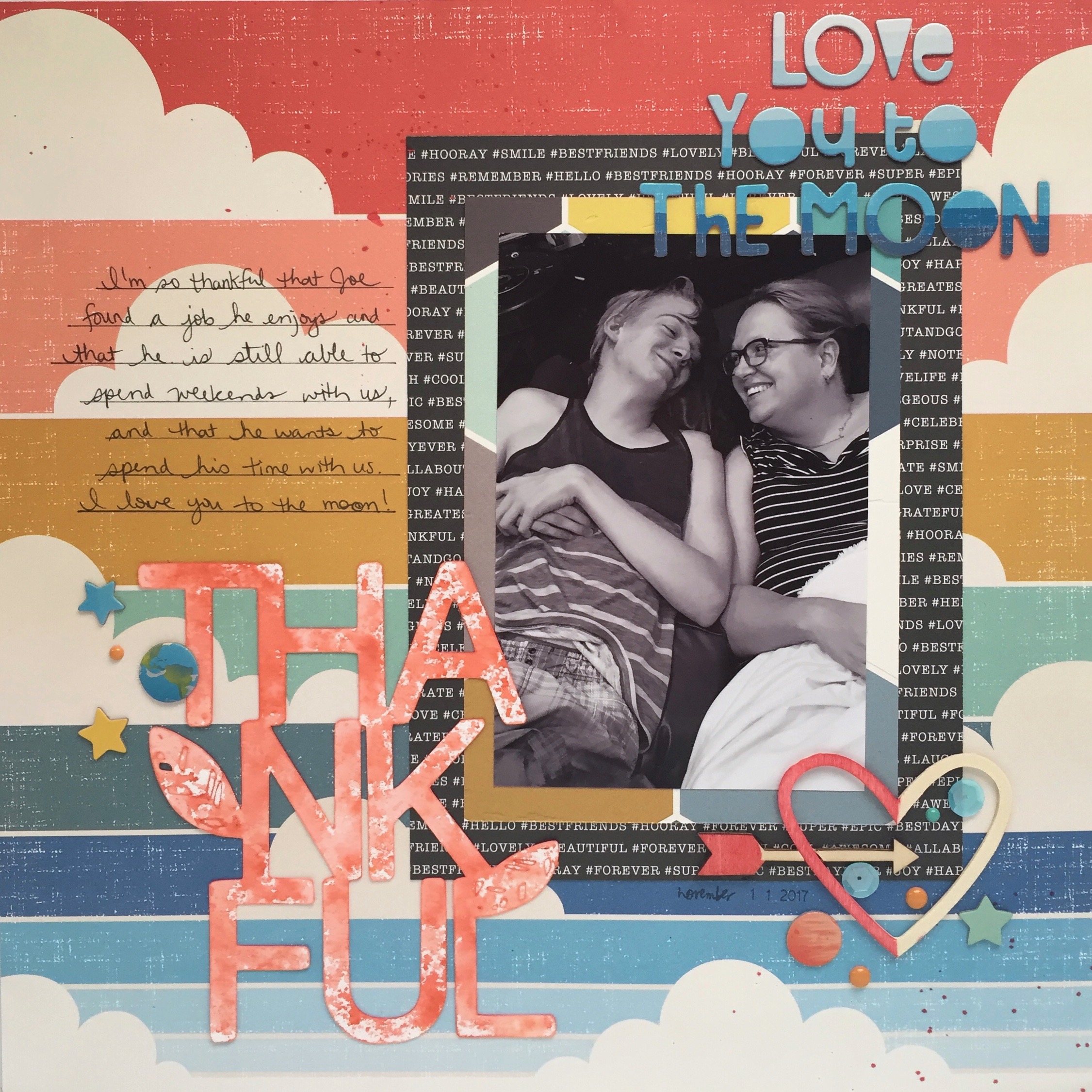 I fell in love with the words, ‘Love you to the moon’ from the Explorer Thickers package. I love how the words start pale and move down to dark blue.