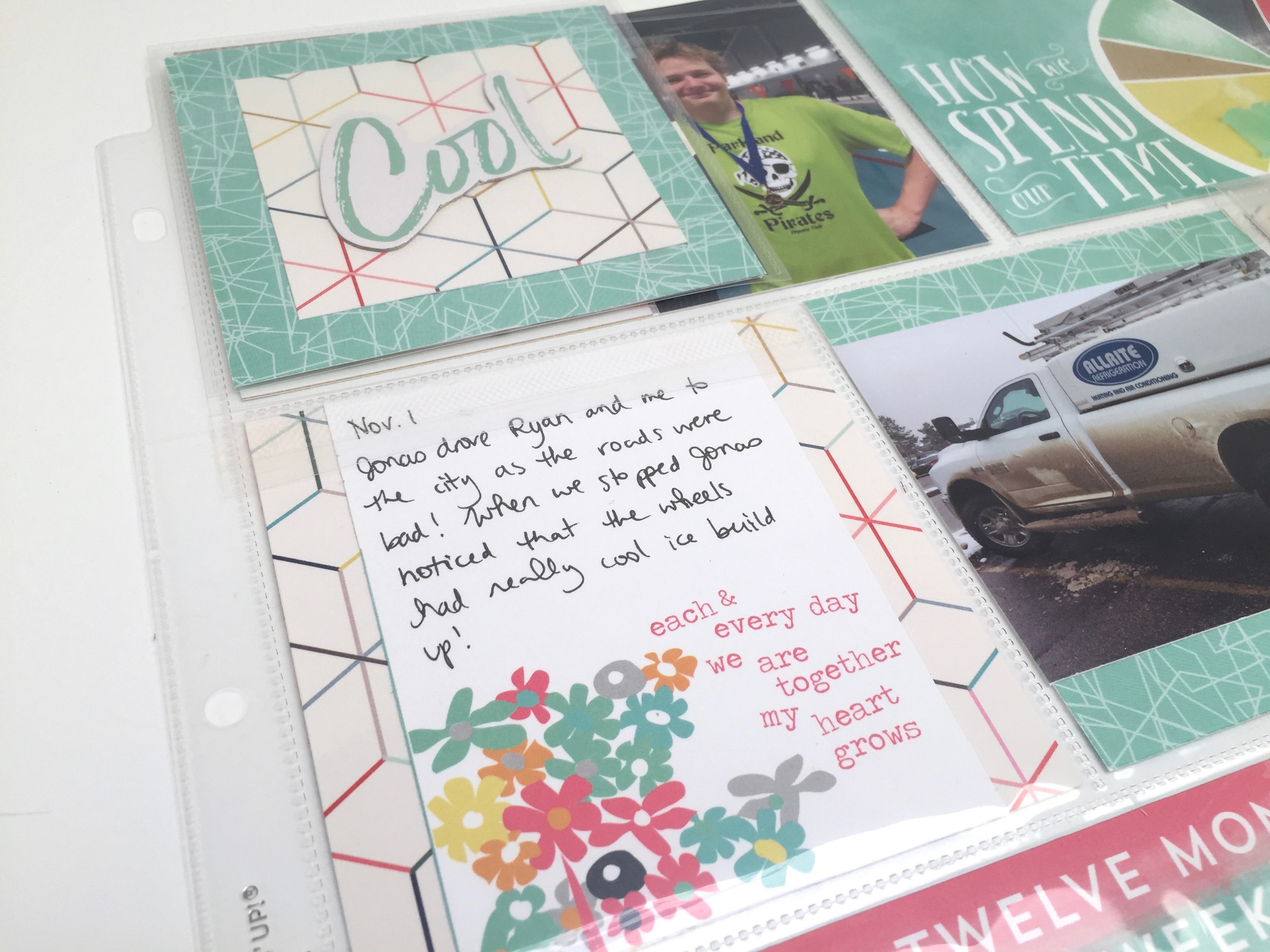 I always try to keep my pocket pages simple, but I like to add a few details like stickers/rub ons to the photos.
