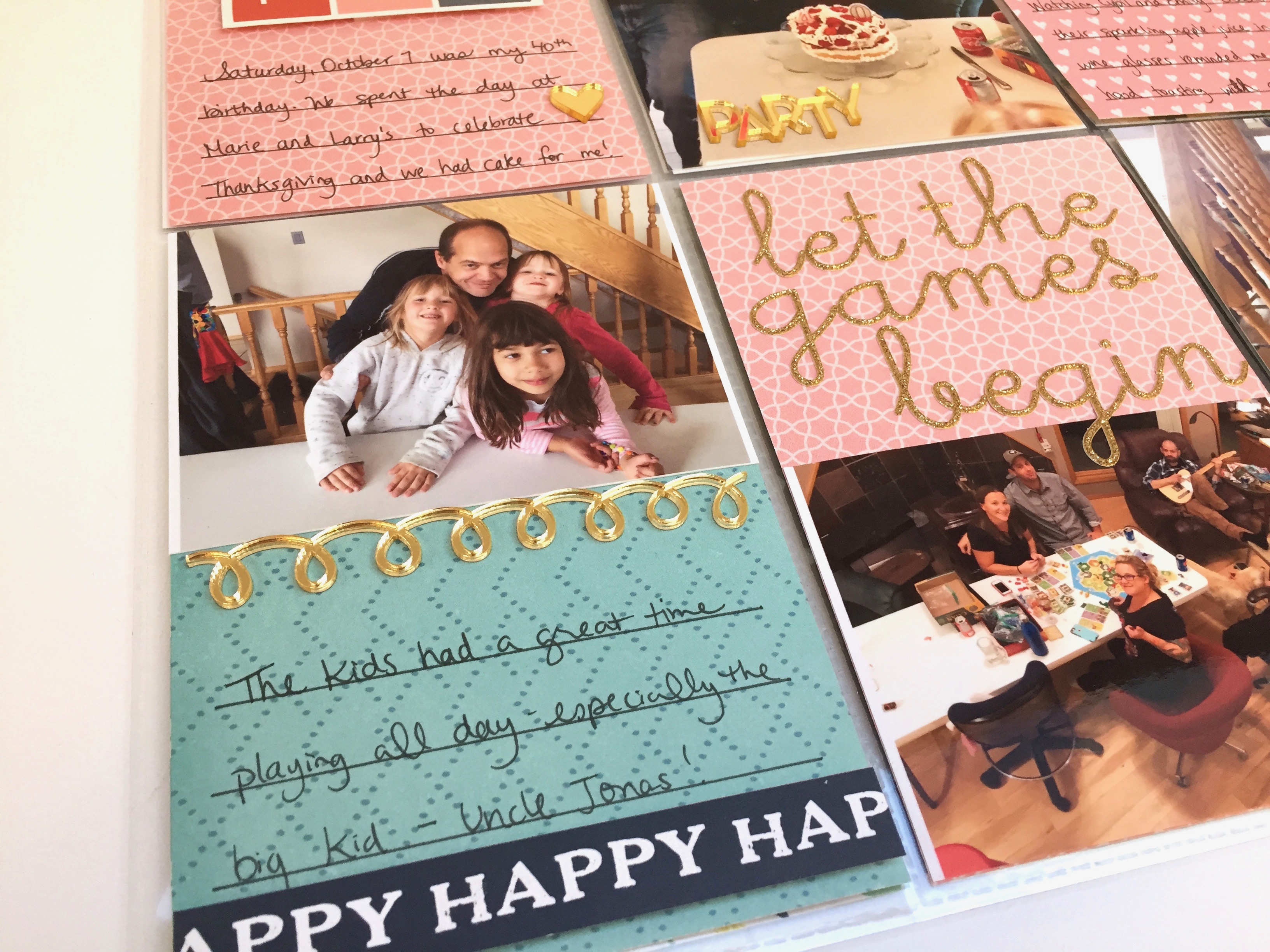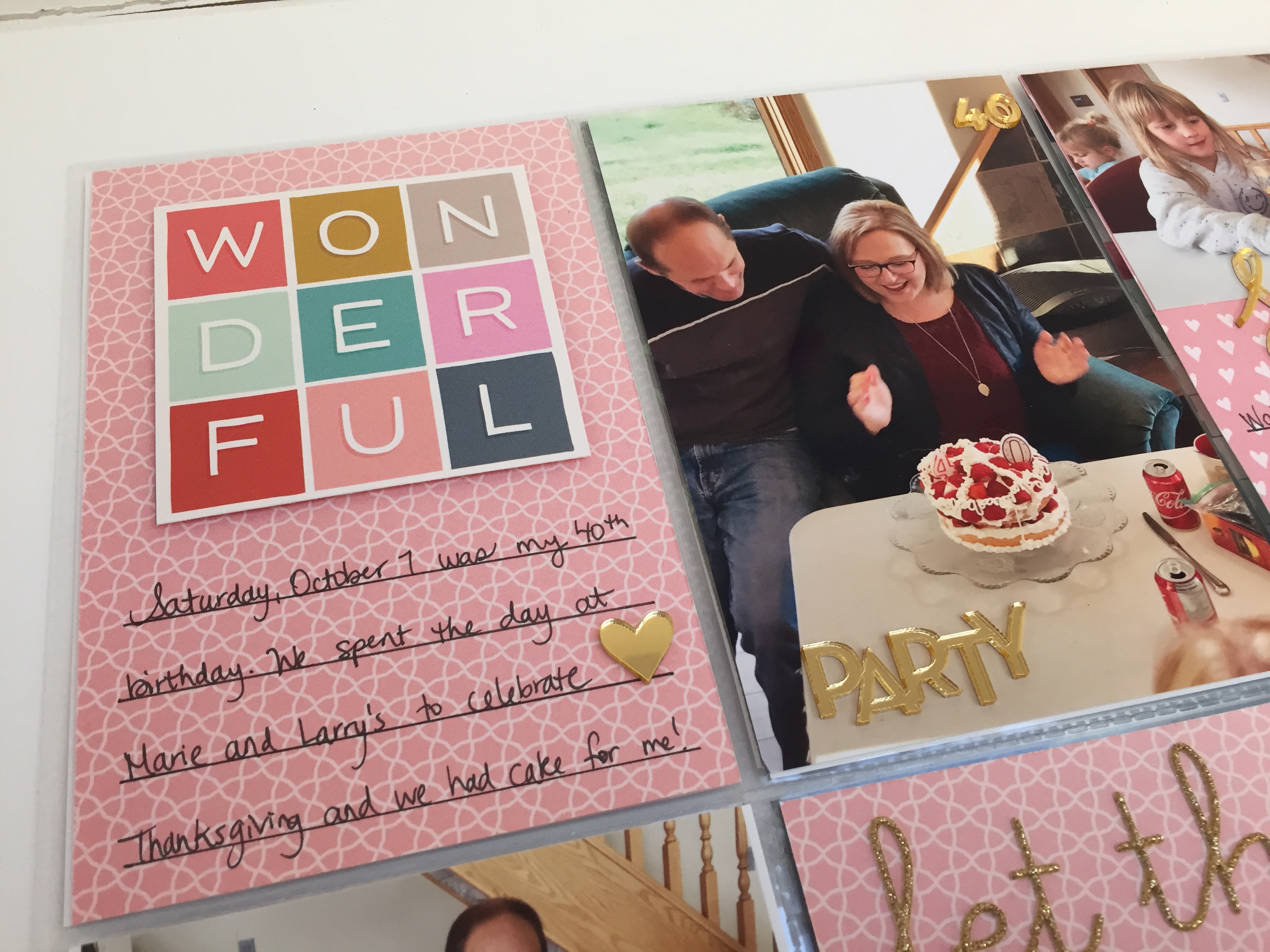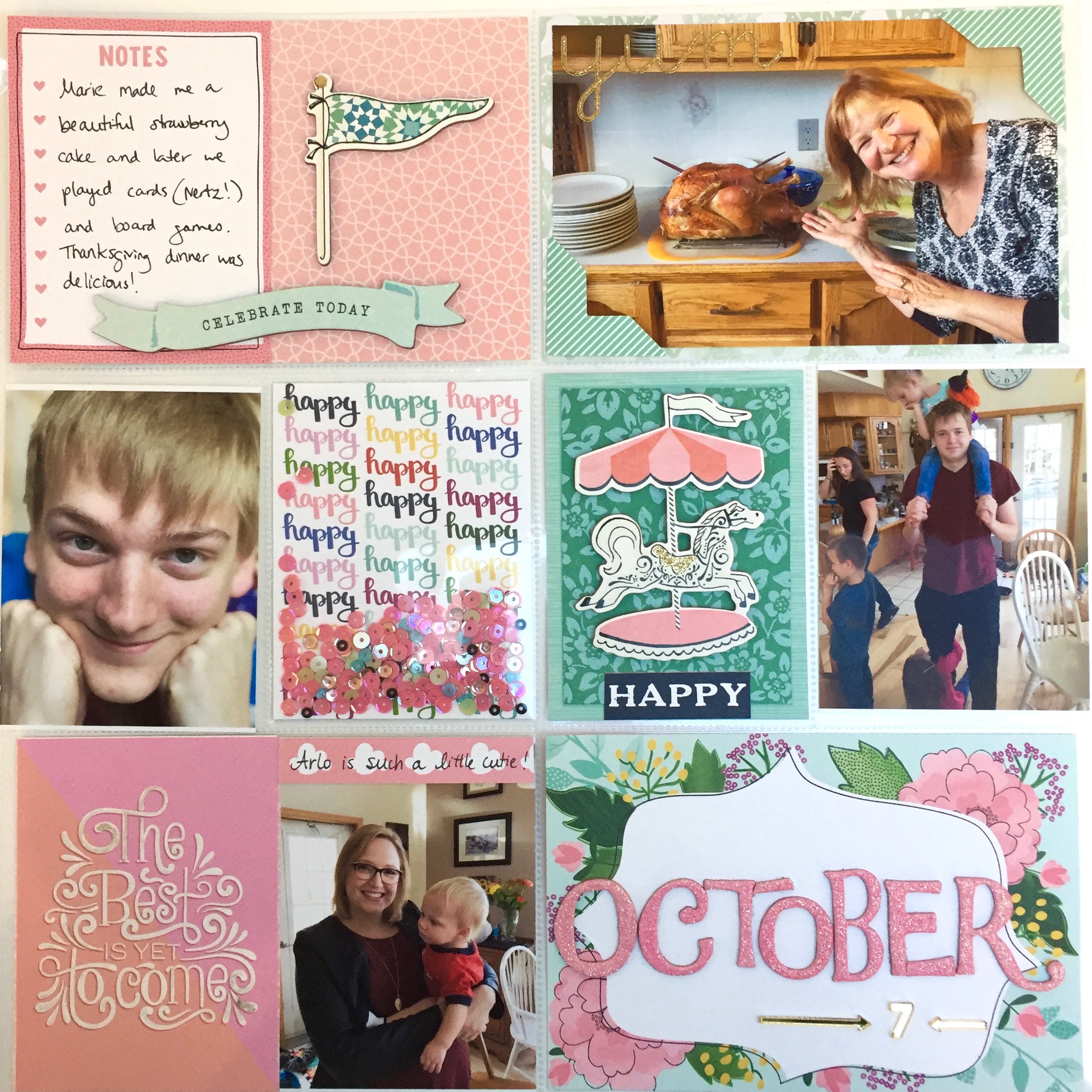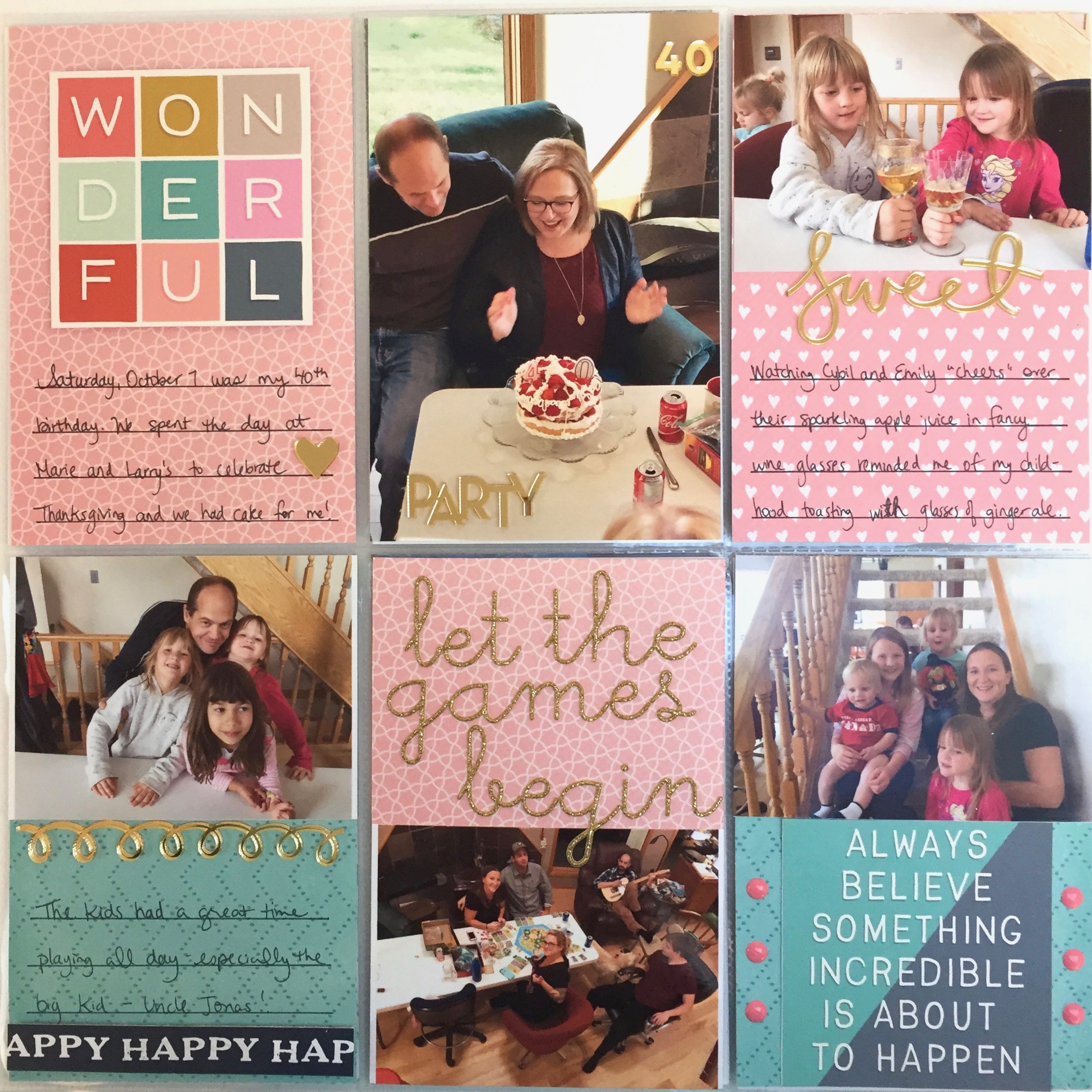 Normally my pocket page represents a month, or the majority of a month. This time I focused just on a single day, my birthday! It was also Thanksgiving here in Canada so we had a great family get-together, and a beautiful strawberry cake for me!