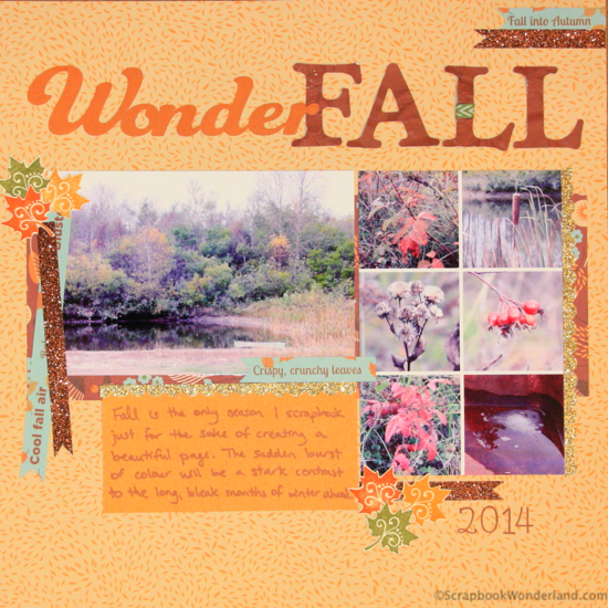 Fall is the only season that I scrapbook just for the sake of creating a beautiful page. Our spring is very short here, in Alberta, Canada, and it’s hard to tell that it’s even happening until it’s already over. Summer is filled with so many activities and winter is long and cold so Fall has a special place in my heart.